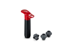 De Le Creuset Screwpull WA-137-wijnpompset bestaat uit een rode wijnpomp en 3 stoppen. Dankzij een ergonomische greep ligt de pomp prettig in de hand. De set is gemaakt van kunststof. Voor het luchtdicht afsluiten van geopende wijnflessen.