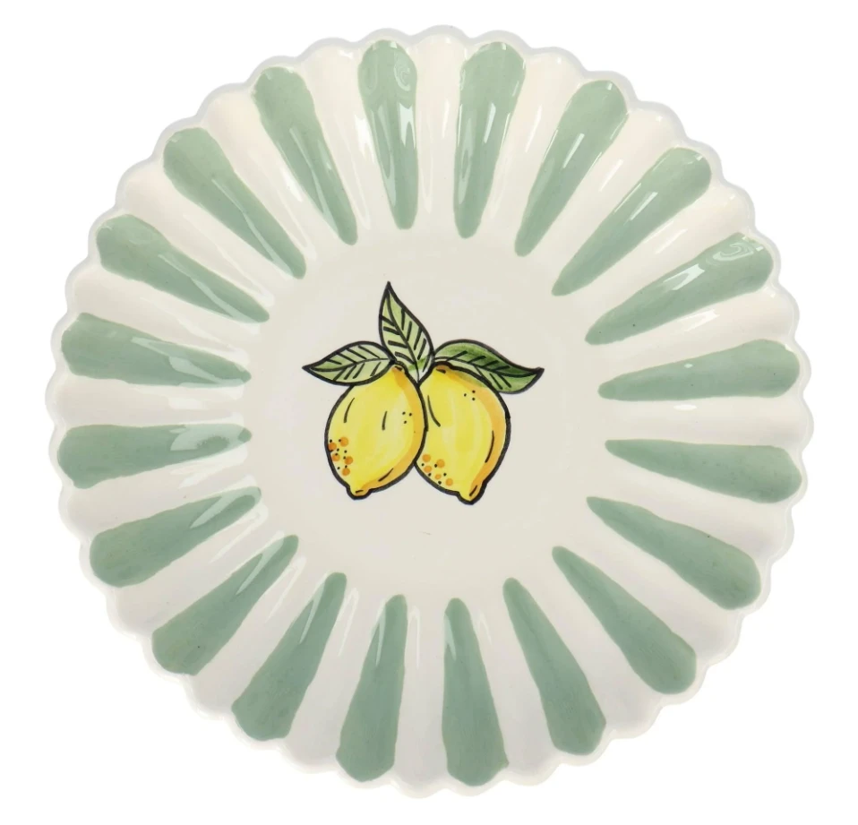 Het Oldenhof diep bord is aan de boven- en onderkant geglazuurd in het wit-groen met een tekening van citroenen. Gebruik het bord voor het serveren van verschillende gerechten. Reinig het bord met warm water en afwasmiddel.