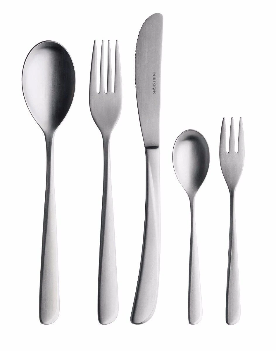 De Puresigns Venti bestekcassette is gemaakt van gematteerd 18/10 roestvrij staal. Het bestek wordt gekenmerkt door de asymmetrische heften en vloeiende lijnen.