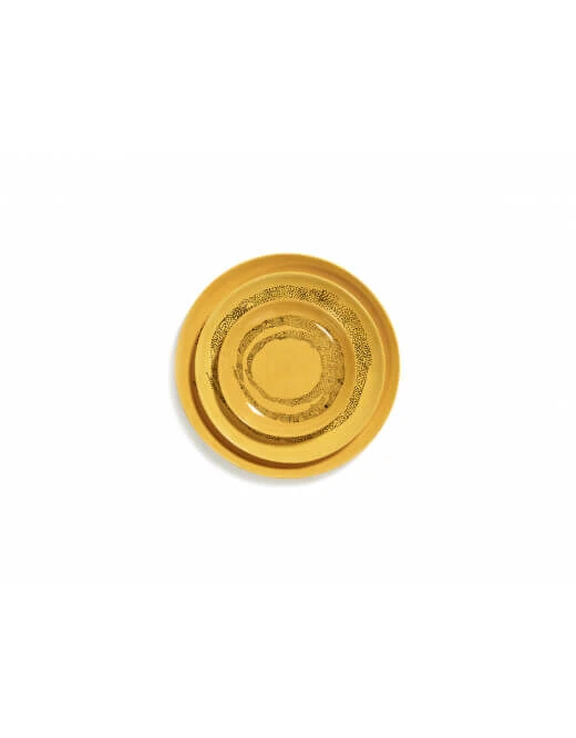 Het Serax Feast by Ottolenghi bord heeft een diameter van 16 cm en is 2 cm hoog. Het aardewerken bord is okergeel van kleur met een zwarte schildering.